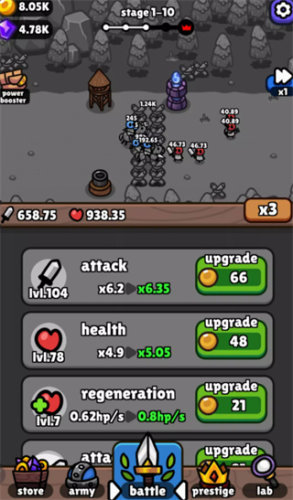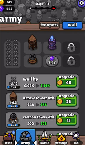 2、也是支持了升级的功能,能够在游玩的时候能够让玩家感受到很多不同的升级兵种能力,不断升级面对不同敌人;