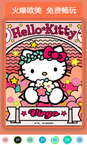 1、提供海量不同图画,每个图画都非常好看,有简单的也有难度的,让玩家自由挑选,没有限制,沉浸在宁静的环境中填色;