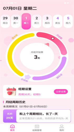 2、采用个性化的设置,为用户带来更加便利与人性化的APP,只需输入个人的信息以及身体状况,实现一键记录周期;
