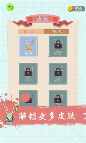 游戏的操作真的非常的简单哦,在进入游戏后,各位玩家们就只是需要滑动然后拖拽水果到榨汁机里头就好了哦,有一键榨汁功能看着一杯杯彩色的果汁出炉真的超有成就感的啦哦不断的挑战高分解锁新的食材和设备,成为传说中的果汁大师吧。