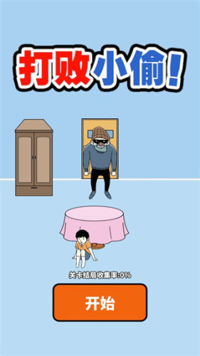 在进入游戏中后,玩家们就只需要动动手指,在每个房间翻找道具然后就可以点击使用了,制造陷阱巧妙击败入侵的小偷有时候需要组合使用比如先滑倒再夹门,只要小偷一落网就能够进入下一关啦每一关都新鲜感满满啊,就是要看看各位玩家们到底能不能在寒假里成为最强抓贼王啊!