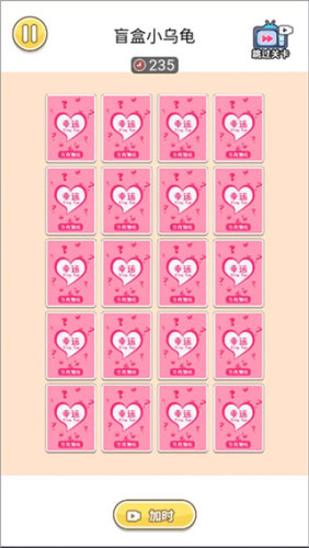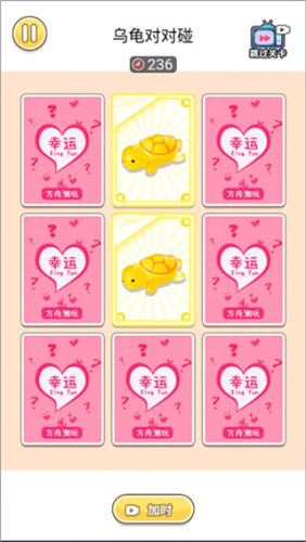 进入游戏后,点击赠送按钮就能开始啦各位玩家只需要在乌龟堆里找到相同颜色的三个,点一下它们就会自动消除有时候还会出现盲盒小惊喜,或者触发幸运颜色额外行动超有意思的,挑战越多越刺激还能解锁更多小道具帮助通关哦。