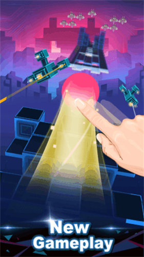 3、能够根据不同的音乐节奏游玩摆动,一点点的操作不断的操作,就能够越走越远,挑战更加多的关卡还有不同乐趣。