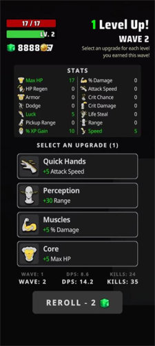 2、特别的玩法机制,让玩家通过升级和收集各种武器道具,不断提升自己的生存能力;