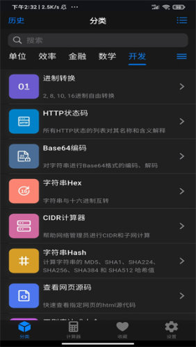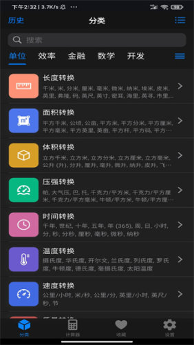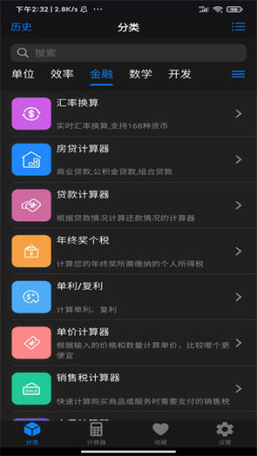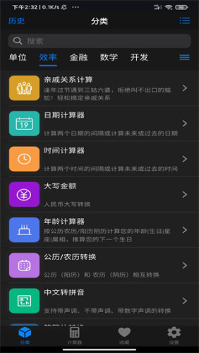 2、简洁的应用界面,让用户可以根据计算的分类进行查找需要的功能,每个功能都根据功能进行分类;