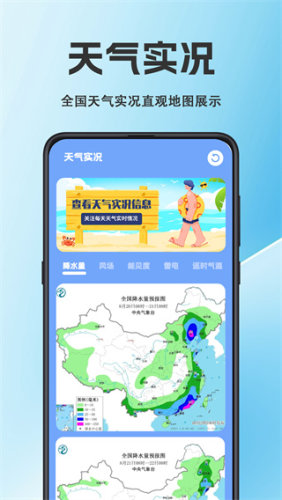 5、以全国的地图展示天气实况,无论是出差、旅行等,APP将会自动提供的天气情况,让用户切换查看天气情况。