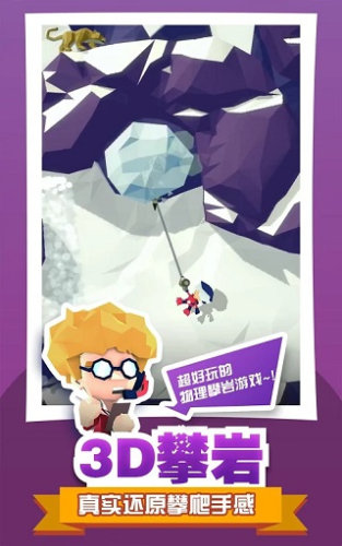 1、提供了3D模拟攀岩,利用物理吸力的原理,让玩家感受真实攀爬手感;