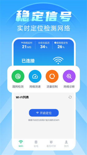 2、自动检测附近的网络,并自动选择最佳的Wifi,让用户随时随地都可以连接网络,畅享稳定网络;