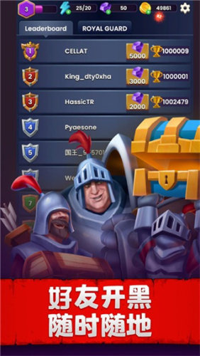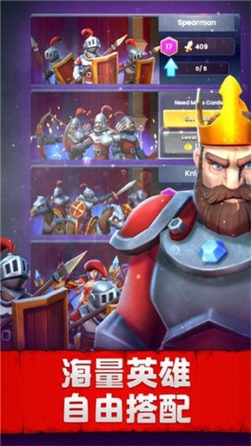 在游戏中,玩家一开始只有少量的士兵,需要在地图上不断移动,去召集更多的兵力。看到敌人实力不如玩家,就可以发起攻击,一步一步扩大自己的势力。游戏不只是拼数量,还要讲策略,比如什么时候该进攻、什么时候该撤退,怎么合理分配兵力。随着兵力壮大,还能解锁更强的英雄和技能,一直不断地挑战更大的对手,最终成为战场上的霸主。