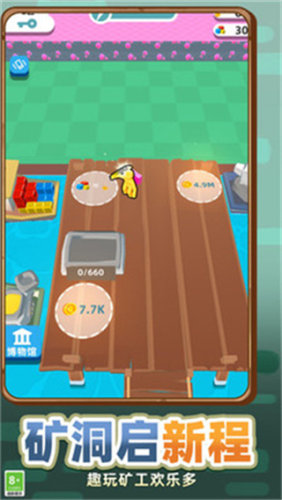 2、所有的矿工和工具都能升级,提高淘金的效率和解锁矿层;