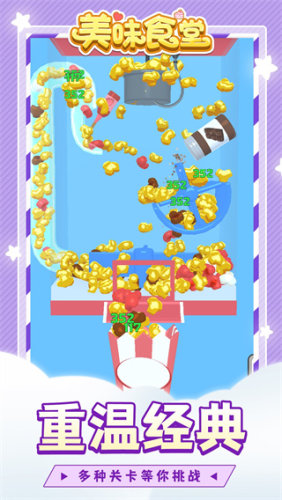 《美味食堂》是一款非常轻松和好玩的模拟经营类游戏,让玩家们可体验经营的乐趣。在游戏里,玩家们将会体验角色扮演化身成为一家爆米花店的老板,并且需要从一家小型的爆米花的机器开始经营,通过合理地经营和管理,逐步扩展店铺的范围和规模。除此之外,玩家们也可以自由地搭配原材料,研发各种新的爆米花口味给玩家们享用,确保能满足每个顾客不同的口味需求。此外,也需要合理地分配资源和提供最优质的服务给顾客们,提升店铺的知名度,亲手打造专属于自己的爆米花帝国。
