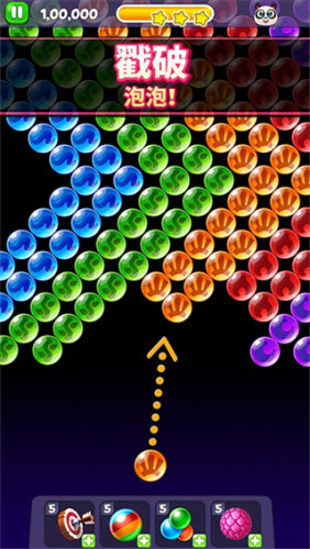 1、非常简单的游戏操作,只需要通过点击和滑动就能够发射泡泡进行游戏了;