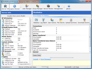 FTP服务器 BulletProof FTP Server 是一个FTP Server 服务器软件,他支持动态IP的更新,如果你没有一个固定IP来架设你的FTP Server 服务器。那你用它准没错,其在设置上和Serv-U相同,使用上及超作上相当的便利。