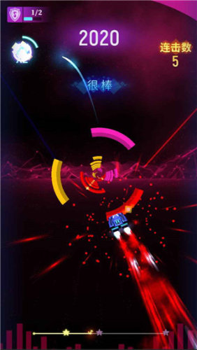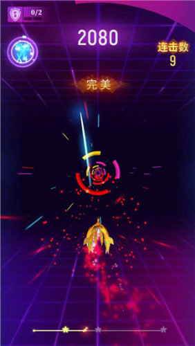 4、精准控制小球去碰到节拍点,整个画面特效很炫,节奏感也特别强。