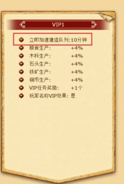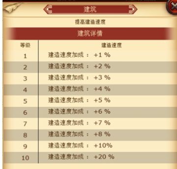 建造加成很高,以后动则几十天的建造时间能为我们剩下很多时间。当然,如果想把这项科技研究的顶级也需要别的建筑或者科技。所以我们只需要升几级,让VIP的时间不至于浪费掉即可。