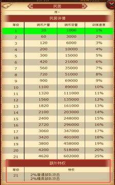部分建筑的21级是有 特殊效果的,比如民居的效果是增加兵队攻击