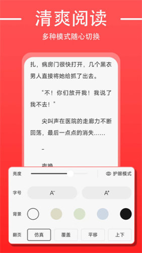 4、多种好用的阅读工具,包括调节字体大小、阅读背景,翻页方式等,收获舒适的阅读体验,打造专属阅读环境。