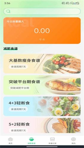 3、设有丰富的减肥食谱,包括每日热量摄入、营养搭配等,来帮助用户合理控制饮食,轻松达到想要的目标;