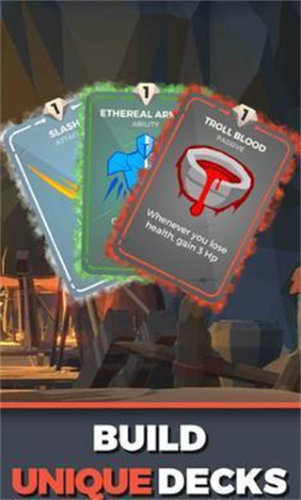 玩家将扮演成为一名冒险者的身份进行游戏,尝试踏入一个充满了危机的地下城世界当中进行卡牌冒险游戏。这款游戏采用的是回合制策略的游戏玩法,合理的安排手中掌握的卡牌组合进行搭配,战士全方面的战斗玩法,当中包括攻击手,防御定位,技能牌等等的阵容,来应对各种陷阱和恶魔的攻击。每次进入探索都会偶遇到全新的事件发生或是卡牌的类型,需要灵活的调整自己的卡牌,不断的打造出一个适合自己的强力组合,来面对各种越来越高难度的挑战。