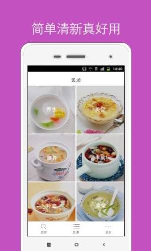 1、丰富的煲汤功能分类,涵盖了家常、养生、美容、瘦身等汤类,让您吃的养生、吃的开心;