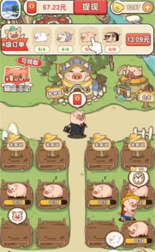 玩家需要从初始的小猪开始养殖,慢慢的积累经验然后解锁更多不同品类的小猪猪。玩家在游戏中需要定期喂食你饲养的小猪猪们,你要时刻保持他们健康和快乐,同时还需要定期进行清洁和照顾,确保小猪的成长。游戏系统会定期发布各种订单任务,玩家需要根据订单要求来养殖相对应的小猪。只要完成订单后,玩家就可以将相对应的小猪交付给客户,然后获得奖励。