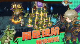 1、一键挂机轻松冒险,英雄将自动打怪,能在离线后持续的获得收益;