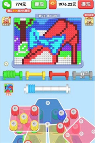 《连连大顺》是一款十分独特和休闲的益智类游戏,同时也包含了赚钱的元素,充满了趣味感。游戏模式的玩法十分简单,结合力休闲益智的元素和扭转螺旋的玩法,深受许多玩家们的喜爱。因此,可考验玩家们的眼部和收受的协调能力,需要精准地掌握各种弹簧拜摆放指定的工具上,然后当金额已将满的时候就会自动自发地将其摆放尽拼图里,这样就能完成任务和获得丰厚的奖励。此外,还设有许多丰富的游戏关卡设计,让玩家们逐步地进行探索和挑战,获得丰富的游戏体验。