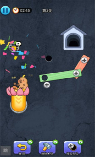 游戏提供了海量不同布局的关卡,每一关的地形、陷阱以及道具分布都不同。比如在丛林关卡里面,场景中布满了藤蔓、泥沼和隐藏的陷阱,玩家需要仔细观察地形,充分利用道具来帮助卡皮巴拉跨越泥沼,避开所有的藤蔓陷阱,并找到隐藏在丛林深处的逃生通道。随着玩家不断的游戏,关卡难度会逐级增加,后续的关卡可能会出现充满挑战的移动陷阱、限时挑战等,像在沙漠关卡中,不仅有流沙陷阱,还会限时哦,玩家要在规定时间内利用道具,引导卡皮巴拉穿过沙漠,到达逃生通道,非常考验你的反应能力和策略规划能力哦。
