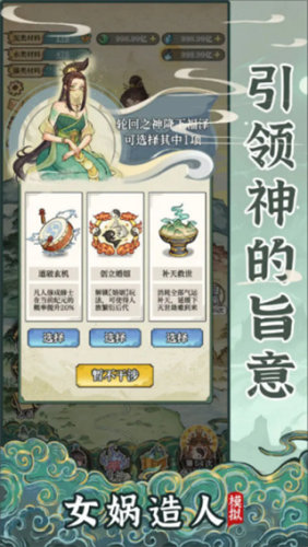 《女娲造人模拟》是一款以神话故事题材的模拟经营类养成游戏。游戏画面充满了国风气息,玩家可以自由构建这个世界的秩序,你需要收集各种不同的材料来创造人类,带领他们不断的发展。