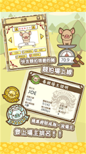 结合了有趣的创意元素以及休闲养成的游戏玩法,相互的融合的游戏内容,展开一场有趣的游戏内容。在游戏当中,玩家将会在一个充满了猪友的世界当中,体验养殖以及繁育的游戏乐趣。通过杂交培育,收集品种等等的幻想游戏。