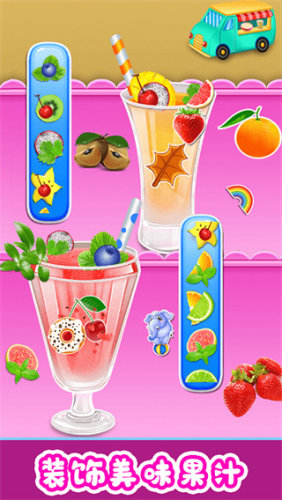 2、随着玩家们不断游玩,玩家们将可解锁新的水果、配料和店铺装饰等内容,大大增加了游戏的可玩性与持久性;