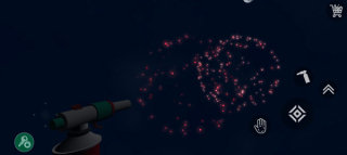 在游戏里,玩家们将通过左下角的虚拟手柄是控制移动,右下角的分别是拿出喷火器、跳跃、移动视角和打火进行操作游玩。玩家们还可以通过商店来购买各式各样的烟花进行点燃,在360度无死角尽情观察美丽的烟花,带给玩家们极致的游戏体验。