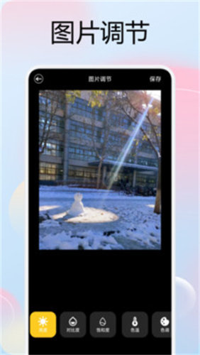 下载软件后,可以直接打开相机的主页面,选择存在于底部的滤镜效果,根据自己的喜好进行选择,同时选择开启美颜效果或是关闭。选择结束后就能开始拍摄,随意的点击快门就能完成拍照。如果需要自拍可以使用倒计时的功能,更加方便进行构图。每次结束拍摄还可以到偏激的页面当中,选择照片进行调色或是添加文字和贴纸等等的操作,增加更多效果直到满意为止就能保存。如果知识需要编辑调整照片,只需要到首页当中选择编辑就能使用各种有个性的创意功能。