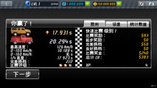 3、通过不断比赛获得奖励,积累资金去商店买更快更厉害的新车,让竞速更有趣。