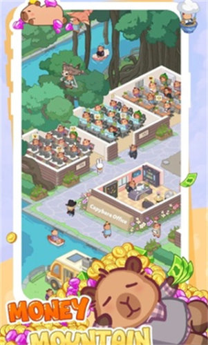 《卡皮生活》是一款模拟经营类的游戏,玩家在游戏中将化身为一位可爱水豚们的老板。起初玩家只拥有一家小小的公司,但随着一步步招募新伙伴、扩建办公室和度假区,玩家的事业也会越来越壮大。水豚员工们在这里悠哉工作、快乐生活,而玩家要做的就是一直不断地经营,让他们的世界更加舒适温馨。