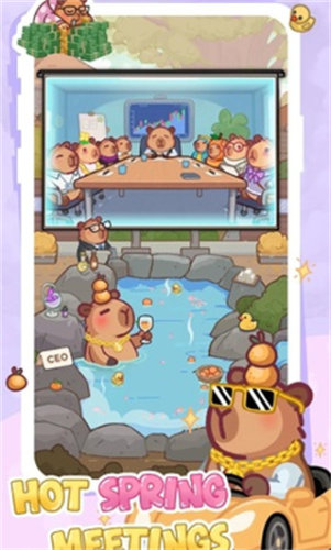 在游戏中,玩家可以一步步把事业从小办公室做到高耸入云的摩天大楼,每个新地点都有独特的主题和惊喜等玩家发现。要想公司更兴旺,就要让水豚员工们天天开开心心。给他们准备零食,建个游戏室,甚至安排温泉放松,看着他们心情好起来,工作效率也会跟着翻倍,钱包自然鼓起来。随着租金收入不断增加,玩家还能收购咖啡馆、投资音乐厅,甚至开一家专属的水豚冒险乐园,让玩家的商业版图越铺越广。