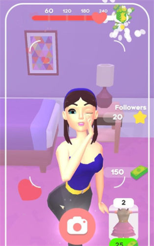 进入游戏后,玩家可以先帮角色挑选服饰啊化妆造型啊然后选择一个喜欢的场景开始自拍可以随时调整角度啊动作和表情啊不断完成各种任务来解锁新的服饰和美妆道具,每次拍完的照片还可以上传收获点赞和粉丝人气值越高奖励越多解锁的道具。