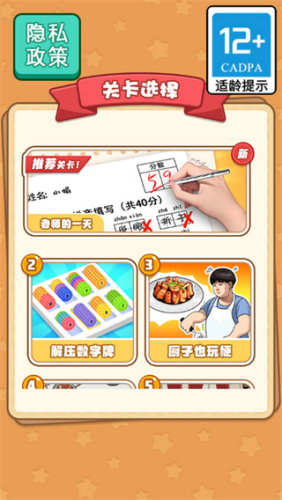 《当老师的一天》是一款轻松搞笑的模拟小游戏,在这里玩家能体验当老师的日常。玩家要给学生的试卷打分,有时候还会遇到一些出乎意料的答案,让人哭笑不得。游戏里还会出现不少网络梗题目,玩的时候会觉得很有趣。关卡一共有九个,每一关都有不同的挑战,批改作业的时候需要开动脑筋,才能顺利过关。
