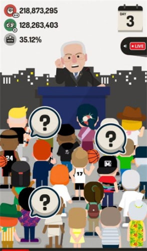 2、设有拉票的游戏方式,玩家可以自由的选择演讲,巡视,辩论等丰富玩法;