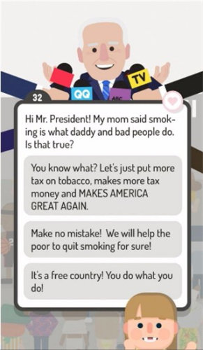 3、带领玩家体验一场真实的政治博弈的游戏玩法,在金钱,民意,支持率下权衡。