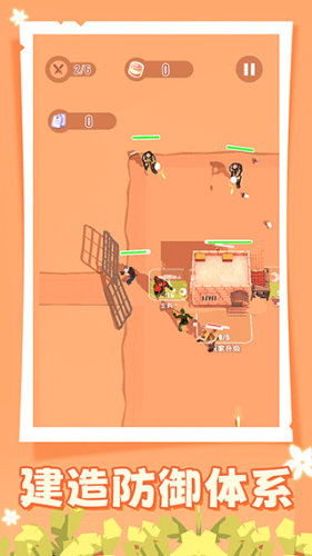 3、通过一直不断地升级自己的基地,解锁更强的防御与装备,面对越来越强大的僵尸群;