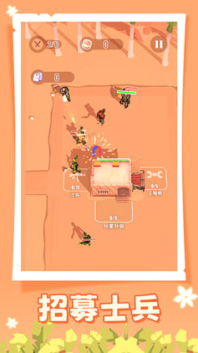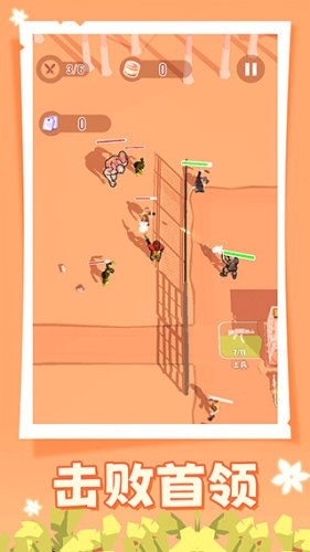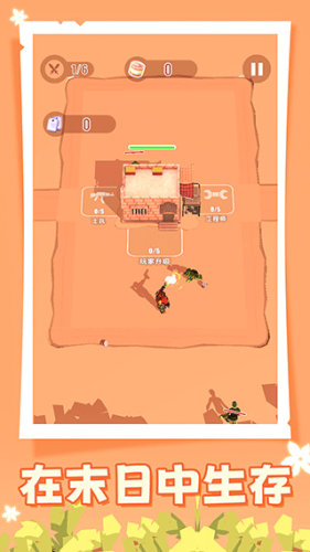 在游戏中,玩家只需要控制角色左右移动,躲避僵尸的攻击,角色会自动开火。击败敌人后,玩家会掉落一些资源,这些资源可以用来升级基地和角色。比如,当玩家走到士兵位置时,就能召唤士兵来帮玩家抗敌,如果走到工程师位置,工程师会帮玩家修建防御工事。每次升级角色时,玩家会从三个随机技能中选择一个,这样能不断提升玩家的战斗力。