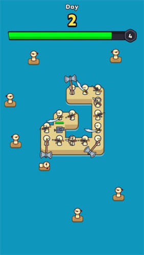 开启游戏后,玩家只是手持一个基础的武器以及小木筏而已,在白天的时候,玩家需要利用有限的时间之类完成收集资源的方式,升级武器,并且建造防御公式等等的方式,决定在木筏扩展的方向。直到夜晚来临,所有的敌人将会成群结队的发起攻击,当中可能会是海岛,怪物,深海势力等等的类型。依靠着存有的武器保护好自己,守护木筏不被攻破。完成战斗后,就能选择一个技能升级,并且有机会招募新的伙伴,每一位伙伴都有着自己的特色和攻击方式,增加队伍的战斗力。
