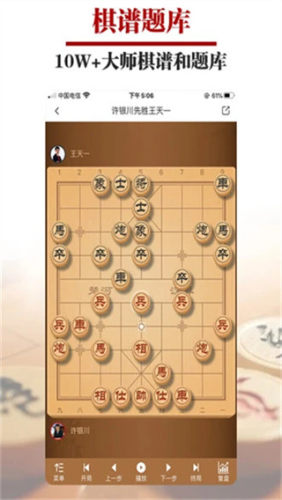 《王者象棋》是一款专门为象棋爱好者打造的专业级训练平台哦,不仅能真人在线对战还能测棋力系统采用中国象棋官方等级分制度,从青铜到王者十个段位让玩家们清楚知道自己到底是新手还是高手,如果玩家们想快速提升棋艺这里有多阶段人机对弈啊AI复盘拆解啊还有十万象棋棋谱和练习题,帮玩家们从基础到大师全面进步。