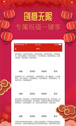 1、附有超多热门的短信集合,一到过年过节就无需困扰于祝福语,打开软件即可就能解决;