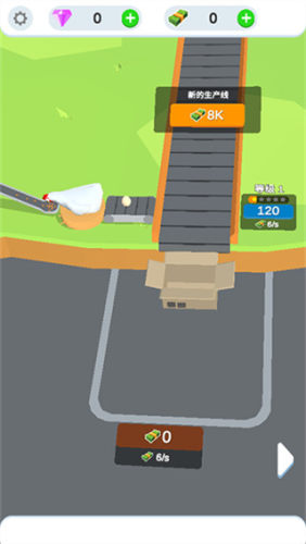 进入游戏后,先点击开启第一条生产线获得一只母鸡它会源源不断地产蛋帮玩家们赚钱,用收益升级等级解锁更多生产线还能开新工厂比如牛奶工厂提供额外钻石收益,生产线越多收入越高继续投资升级就能打造顶级鸡蛋帝国哦!
