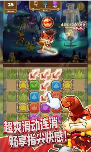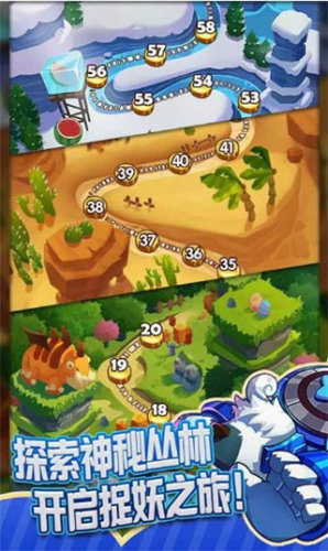 开启游戏后,玩家将扮演成为一名勇敢的冒险者身份进行游戏,尝试进入充满了未知的丛林世界,与各个萌宠小伙伴一同走向抓妖之路。通过三消的游戏模式,只需要操控指尖上下左右的滑动就能将形同元素消除,不断地积累能量,把消除的能量累计成为攻击力。当中还设有对战boss的玩法,玩家一旦消除的越多,战斗里就会越强,释放出更高伤害的能力。当中还设有养成系的游戏玩法,在冒险的过程当中不断地收集资源,更好的培养萌宠的技能和属性搭配,提升战力值。