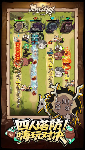 1、和朋友一起守塔,四人同屏拼操作拼思路,一直不断地学习新的玩法,还能参考别人的战术,一起挑战强力BOSS,合作闯关更轻松;