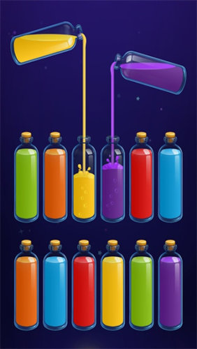 《烧脑滴瓶子倒水解压分类》是一款十分有趣和解压的益智类游戏,通过游戏可不停地锻炼玩家们的大脑,非常有趣。游戏的玩法十分简单,只需要将相同颜色的液体放在一起,因为不同颜色的液体是不能融合在一起的,所以需要将所有不同颜色的液体都排序完成就可顺利的进入下一个关卡。因此,游戏里提供了多个不同的水管,需要将每个水管都填满颜色就可完成任务,充满了趣味感。同时,也能不停地考验玩家的逻辑思维能力,需要通过策略规划液体的排序过程。