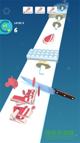 《我切菜贼6》是一款休闲闯关的节奏游戏。在这里玩家将化身为切菜高手,需要在滚动的传送带上有节奏感的切割不断送出的蔬菜,水果和肉类等食材。当玩家每切下一个食材都将伴随着爽快的音效和画面特效,讷讷感让玩家置身于充满欢乐节奏的厨房之中。除了单纯的切菜玩法,还有制作美食挑战,让玩家能获得收益购买更加华丽的菜刀。游戏以简洁可爱的画风搭配轻松有趣的节奏,既能打发碎片时光又能获得切割成就感和爽快感,是款适合大人小孩的无年龄限制解压游戏,感兴趣的玩家就赶快来展示自己炫酷的切菜本领吧!